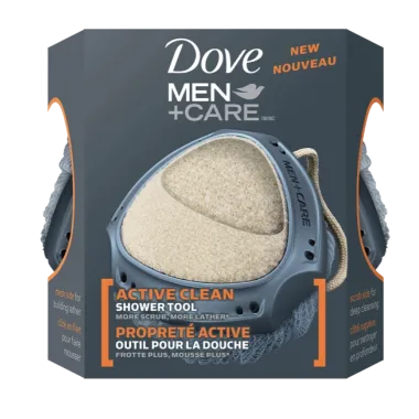 Dove® Men CareTM Active Clean Dual-Sided Shower Tool works with body wash for extra scrubbing power you can’t get from just using your hands. The mesh side delivers the perfect amount of thick cleansing lather, and the scrub side helps exfoliate for a deeper clean. Easy to grip and easy to hang. For best results, replace every 4-6 weeks.